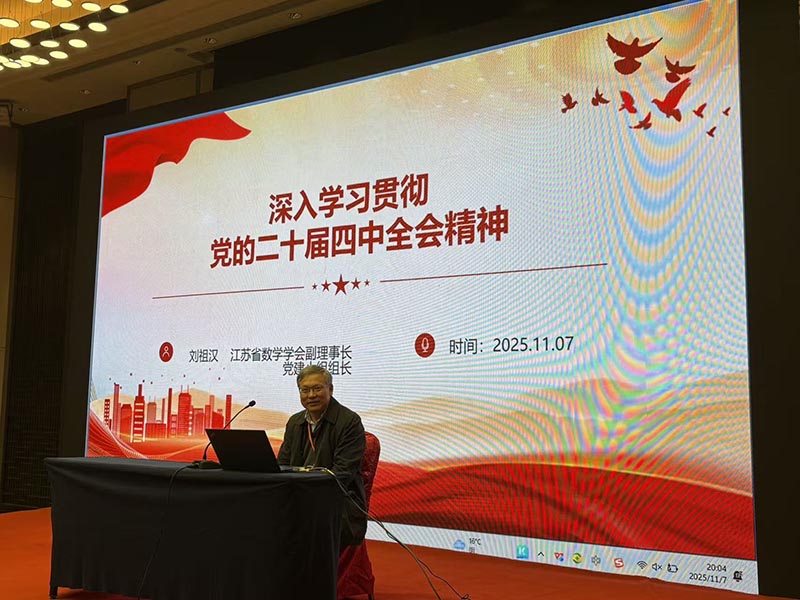 11月7日,为深入学习贯彻习近平总书记在党的二十届四中全会上的重要讲话精神和党的二十届四中全会精神,江苏省数学学会理事会党建工作领导小组组织开展党建主题教育活动。本次活动由学会副理事长、理事会党建工作领导小组组长刘祖汉主持,学会正副理事长、理事、监事会成员以及秘书处人员参加了学习活动。