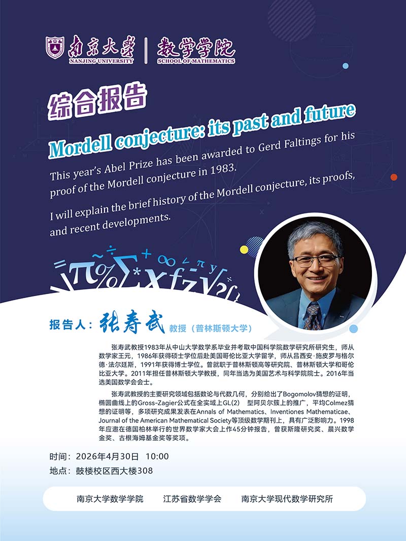 南京大学 综合报告(4.30) 张寿武:Mordell conjecture: its past and future
